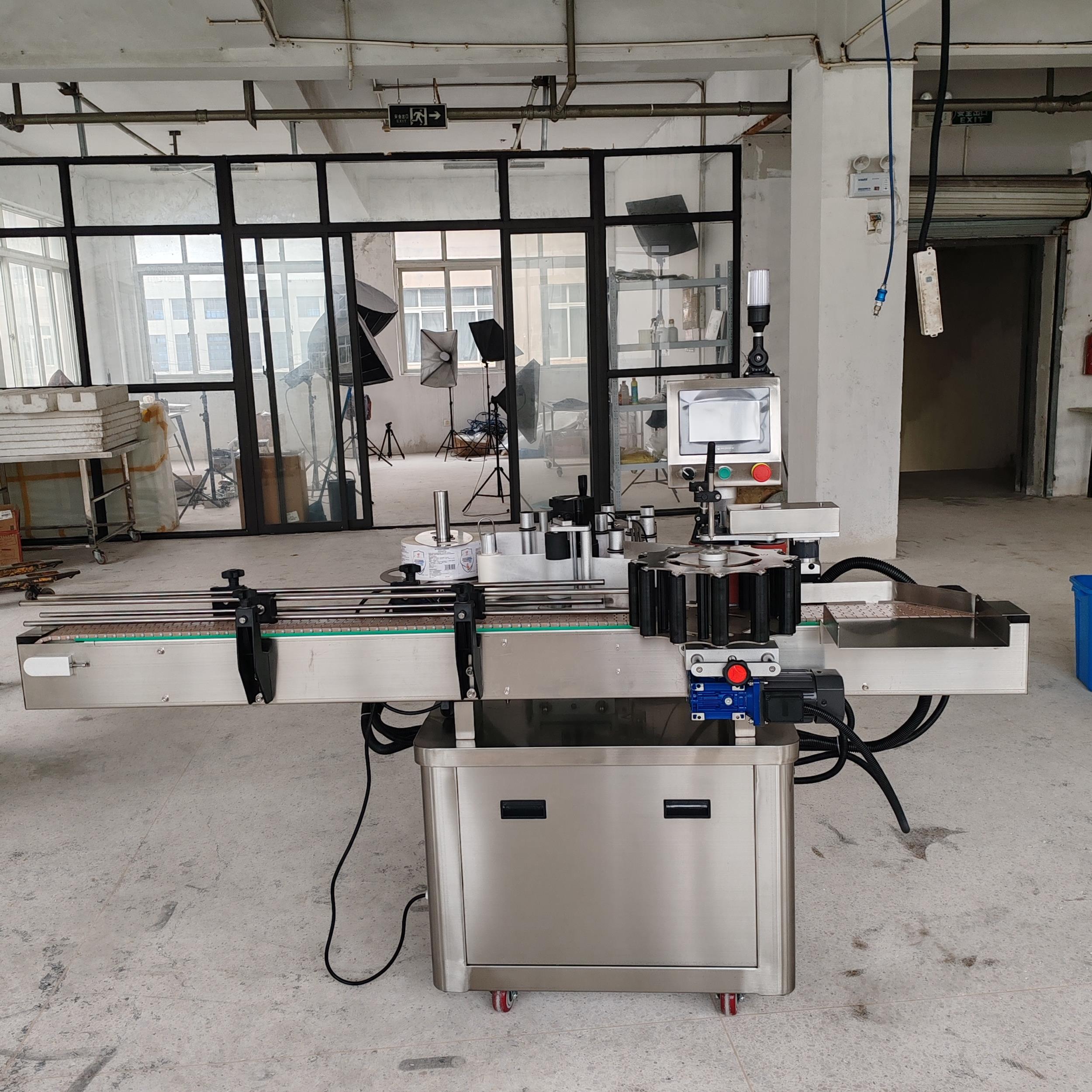 全自動圓瓶不干膠貼標機能自動把標簽貼到瓶子的指定位置,同時完成打印批號,日期,產量計數,在遇到缺瓶時,控制系統保證不送標,有效的防止標簽的浪費,并可根據各廠的生產特點對貼標速度作無級調整,從而保證該機能單獨使用或與其他機器聯線使用。也可以在機器上配色帶打碼機或噴碼機使用。
