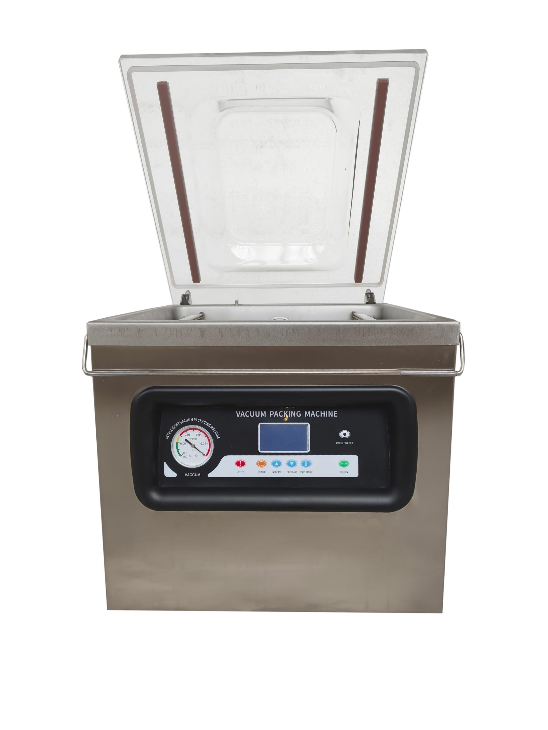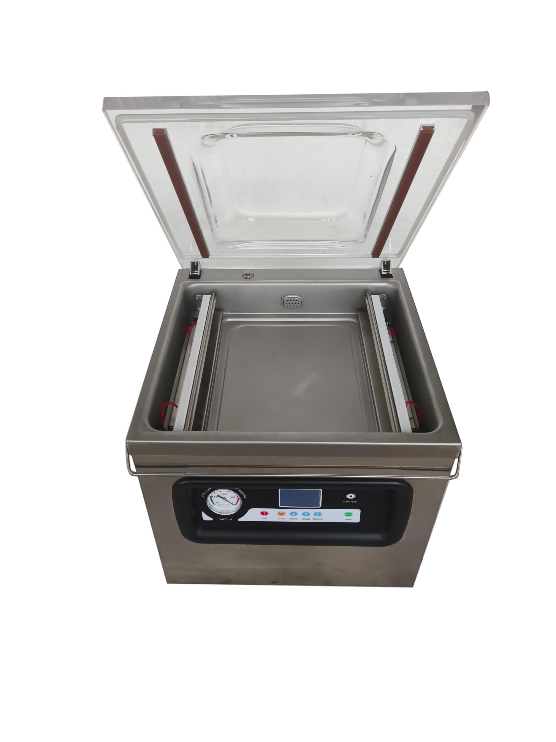 電壓:220V 50HZ 國插 201SS不銹鋼材質 功率:900W 速度: 真空封口尺寸:400*280*50mm 能封物品最高部份:280*210*80mm 封口條:長400*寬10mm 內室深度為:50mm 機器外尺寸:480*520*500mm 55KG